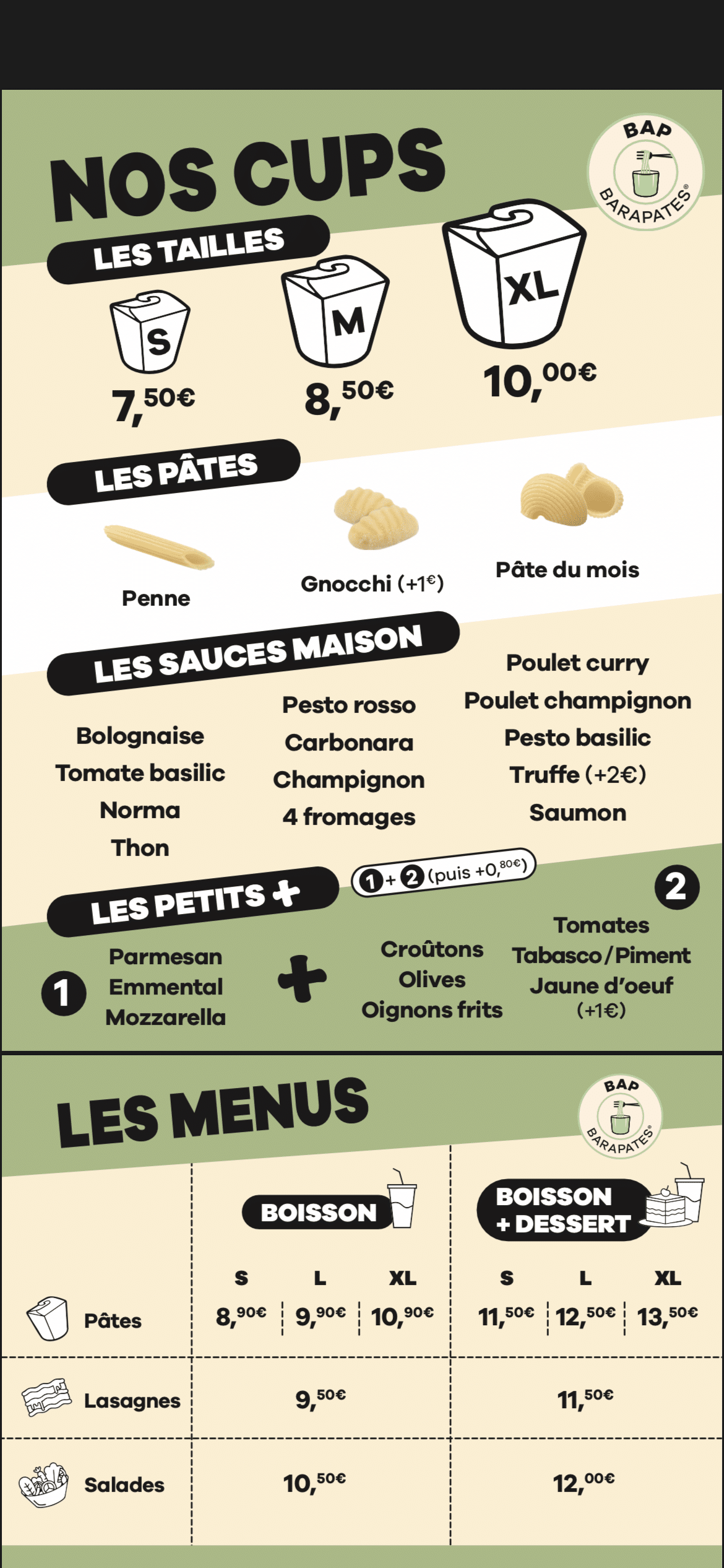 Rendez-vous chez BARAPATES® et créez votre plat de pâtes personnalisé dans une ambiance chaleureuse !
